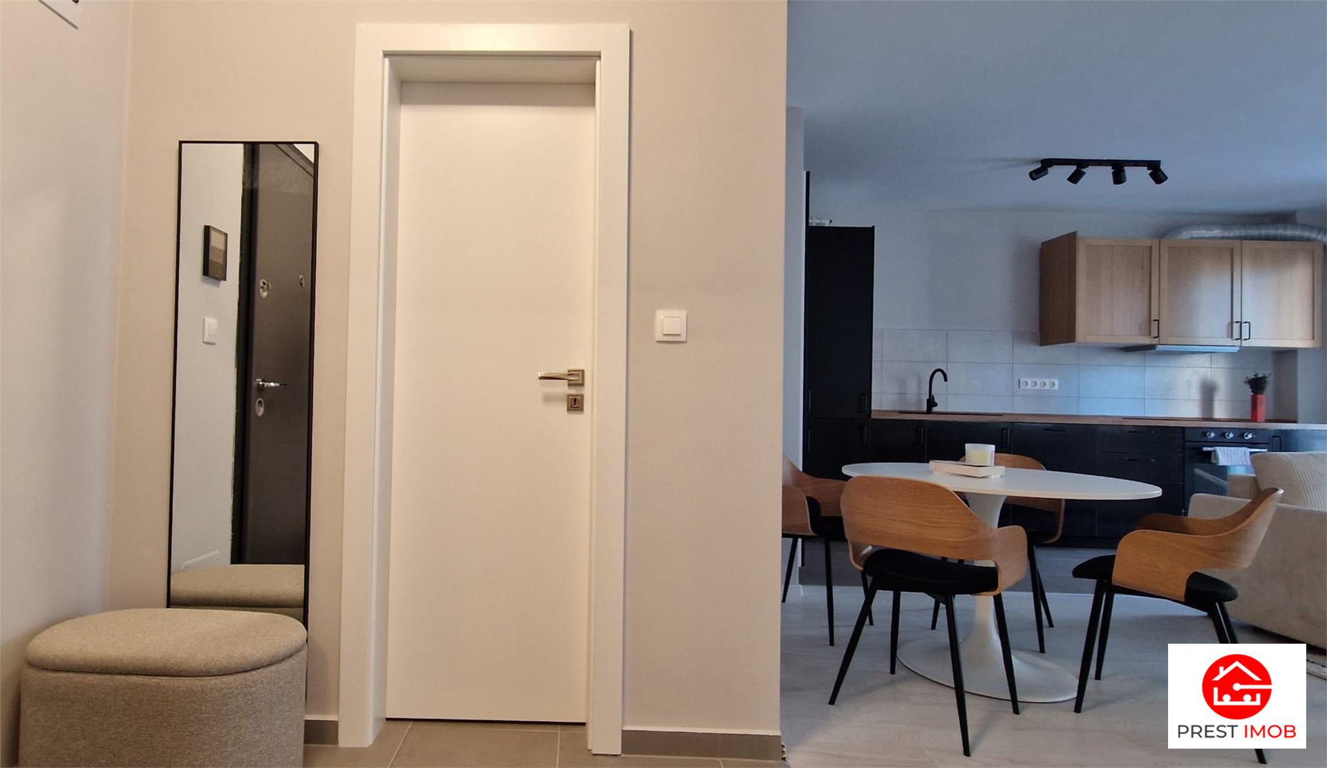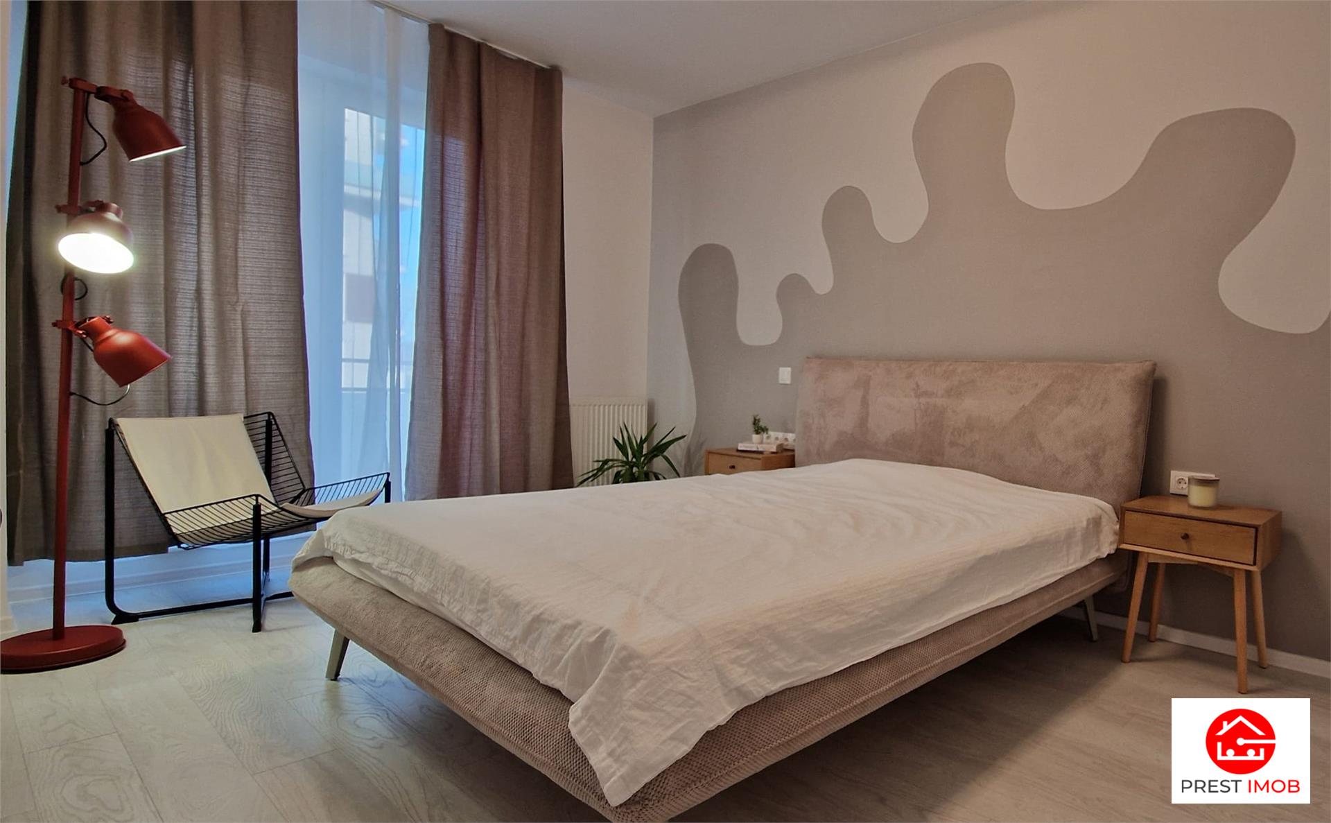 Apartamentul are living si bucatarie open space, un dormitor, baie, dressing si balcon de 10mp. Se inchiriaza mobilat si utilat complet, modern, doar unor persoane serioase, pe termen lung. Dispune de o boxa pentru depozitare si un loc de parcare subteran inclus in pret. Nu se accepta animale de companie.