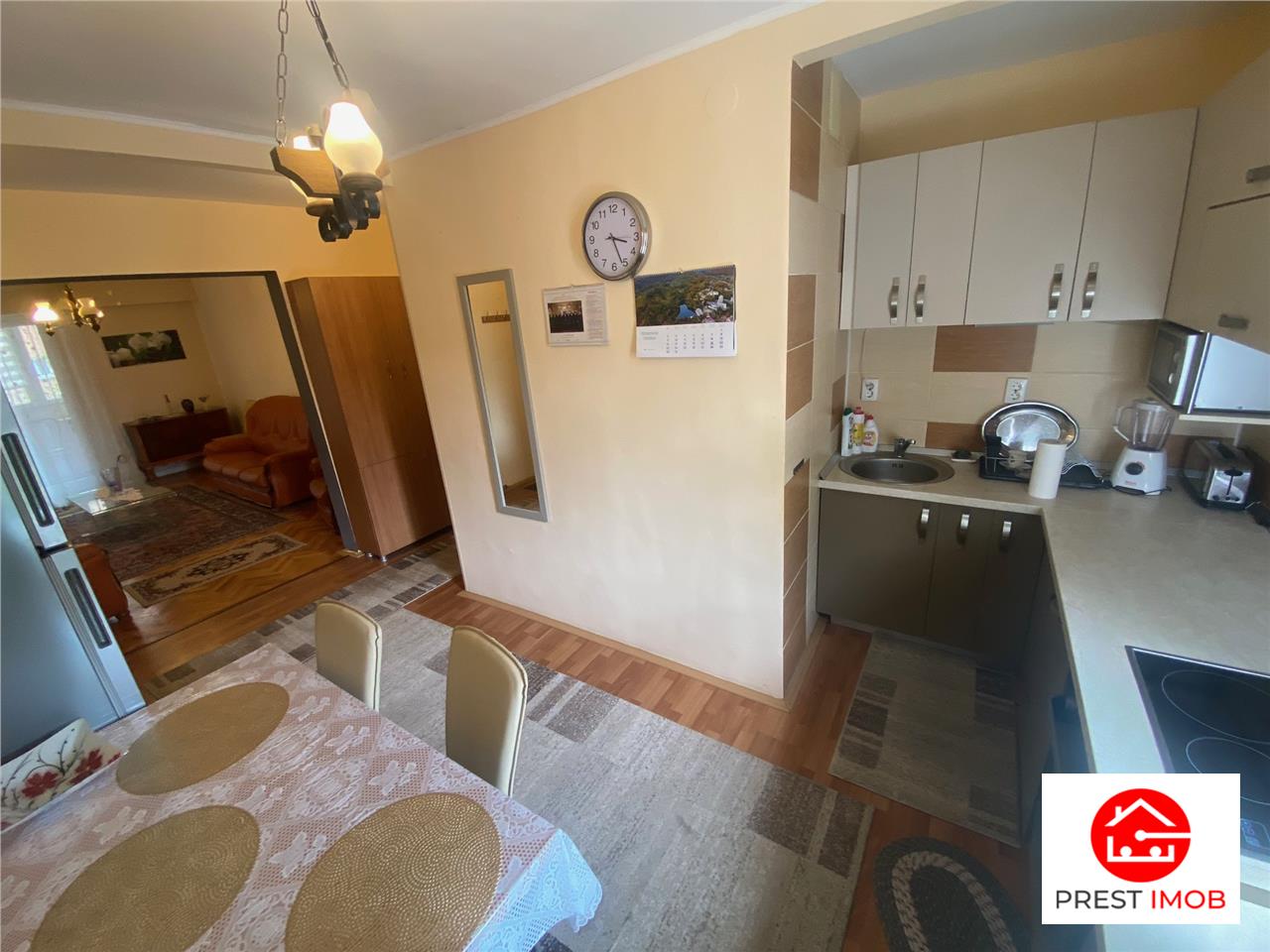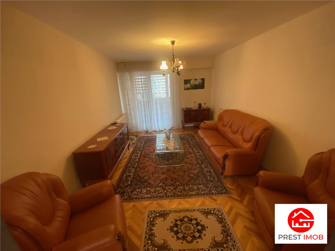 Apartamentul este compus din 3 camere decomandate, bucatarie, doua bai, dressing, hol si balcon cu iesire din doua camere. Este mobilat si utilat complet, dispune de centrala termica proprie, ferestre termopan, masina de spalat rufe, masina de spalat vase etc. Se inchiriaza doar unor persoane serioase si pe termen lung. Apartamentul dispune si de pivnita.