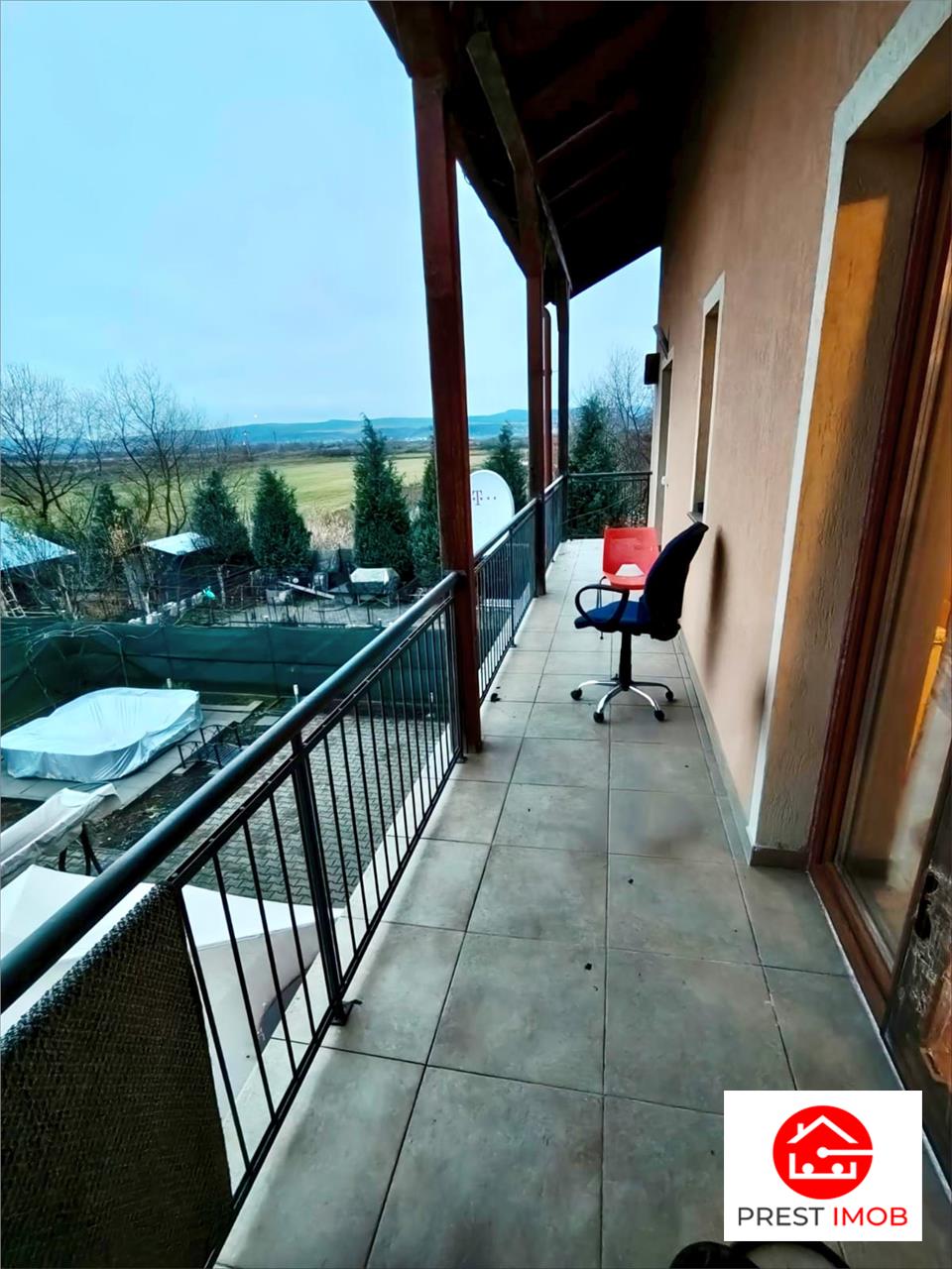Compartimentarea este una moderna si foarte bine gandita: living cu bucatarie openspace, 4 dormitoare spatioase, 3 bai, 2 dressing-uri, spalatorie dedicata, 2 terase si un balcon, mentionez ca dormitorul matrimonial are o dimensiune impresionanta si este dotat cu baie proprie, dressing si balcon, iar 2 din dormitoare au acces la tarasa. Finisajele includ geamuri termopan, usi interioare din lemn, centrala proprie si semineu. Proprietatea se vinde partial mobilata, oferindu-ti flexibilitatea de a o amenaja asa cum iti doresti. De asemenea, dispune de toate utilitatile si sistem de alarma.